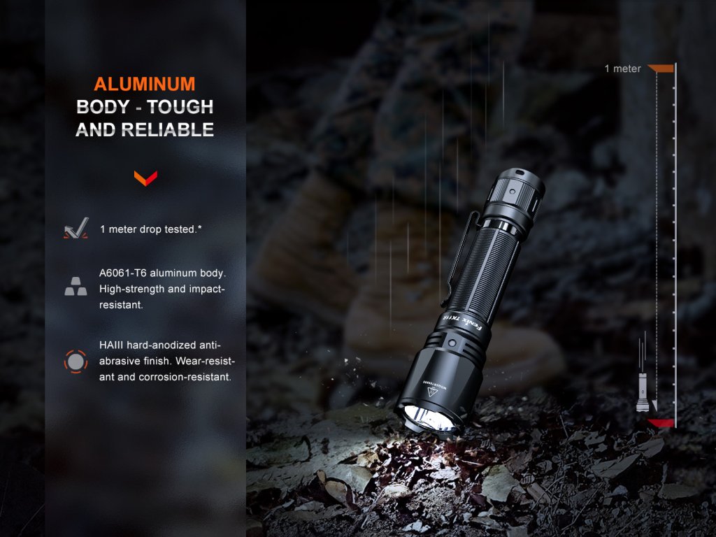 Výkonná taktická svítilna Fenix TK16 V2.0 nabízí špičkový světelný tok až 3100 lumenů (ANSI) a dosvit až 380 metrů. Svítilna je napájena jedním Li-ion akumulátorem typu 21700 s USB-C konektorem (je součástí balení), který dodá energii až pro více než 43 hodin svícení. Velmi solidní a voděodolné provedení a dvouvrstvá konstrukce těla předurčuje tuto taktickou svítilnu pro drsné venkovní podmínky, pro profesionály, ozbrojené složky i myslivost. LED svítilna Fenix TK16 V2.0 používá duální taktický spínač, který umožňuje rychlejší a spolehlivější ovládání v krizových situacích. Lze ji například rychle zapnout přímo do stroboskopického režimu. Hlava svítilny je opatřena úderným ráfkem z oceli, který je navíc vybaven třemi hroty z wolframové oceli. Proto lze svítilnu použít k proražení skla v krizových situacích či k sebeobraně. Svítilna je napájena digitálně kontrolovaným konstantním proudem pro zaručení stálého světelného výkonu i při snižování napětí v bateriích (při jejich pozvolném vybíjení).